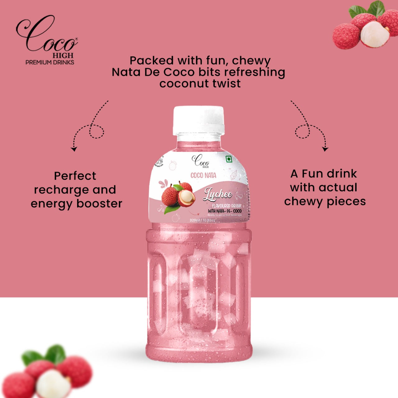 | Revitalize your active lifestyle with our Lychee juice! Packed with fun, chewy Nata De Coco bits and a refreshing coconut twist, it's the perfect recharge and energy booster after your favourite sports or workout. Providing a refreshing boost to fuel your active lifestyle and power through your day. A Fun Drink With Actual Chewy Pieces |